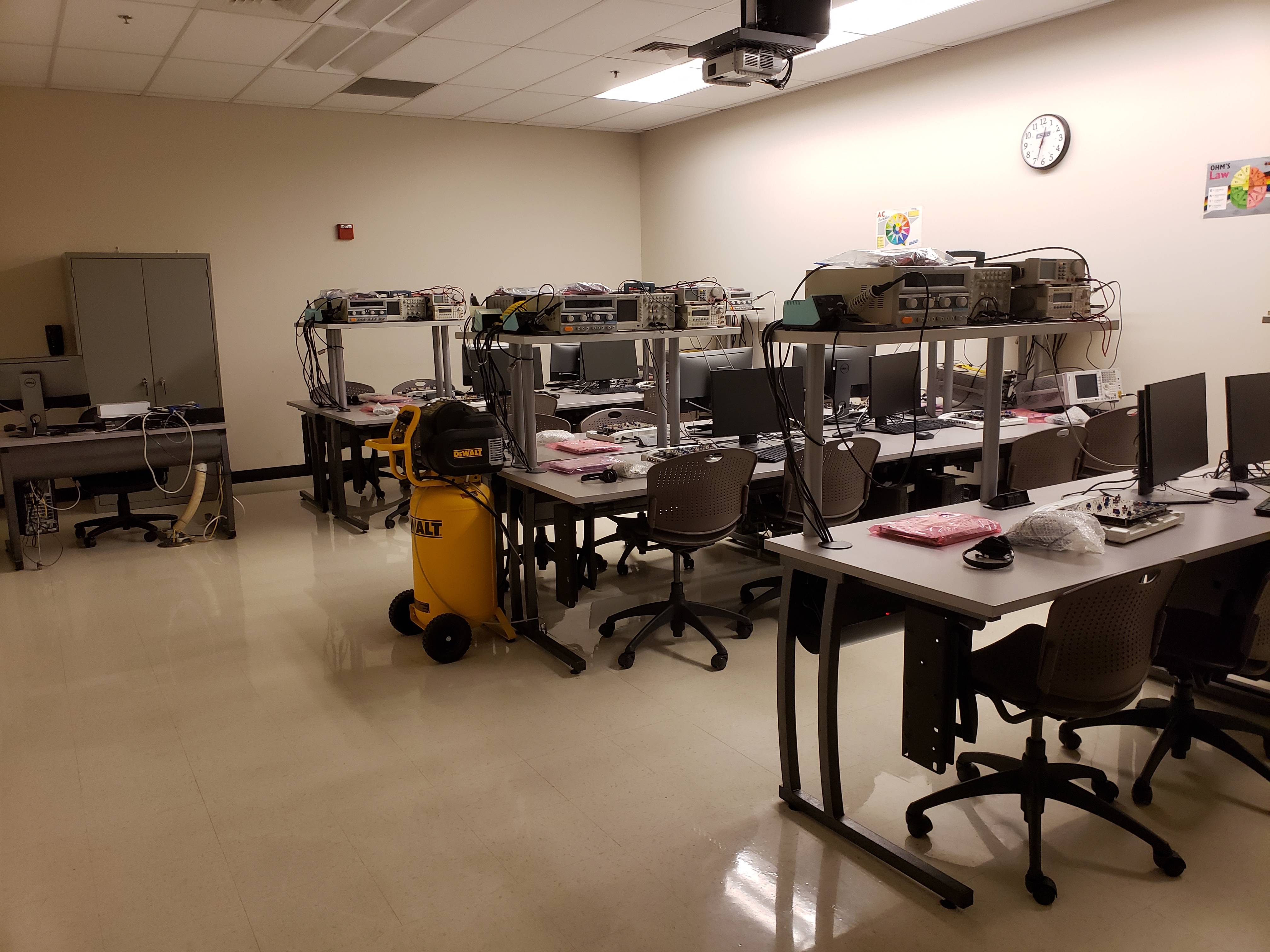 This lab is managed by the ECE faculty. It is used for research in digital and wireless communications, as well as courses in communications and digital signal processing. It is equiped with signal generators and analyzers, NI Elvis II systems, scopes, function generators, and software defined radios. This lab is also used for engineering outreach for high school students during the summer.